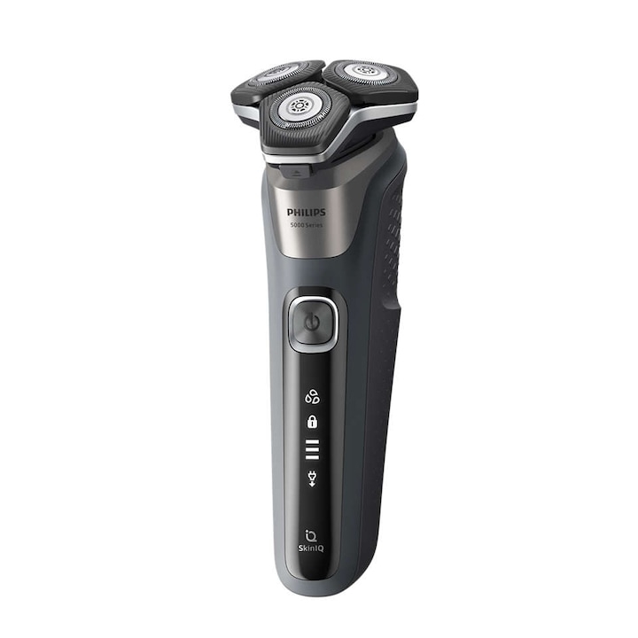 Aparat de barbierit PHILIPS Shaver Seria 5000 S5585/10, barbierit umed/uscat, tehnologie SkinIQ, fara fir, capete flexibile 360°, display LED, senzor Power Adapt, lame auto-ascutire, lama integrata, 60 min, Midnight Blue