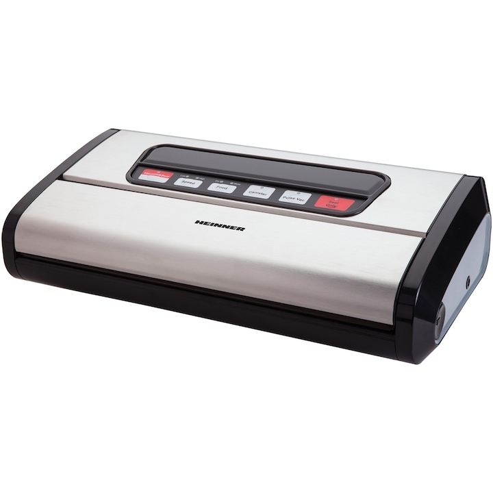 Aparat de vidat si sigilat Heinner FreshLock 110SS HAV-E110BKSL, vidare umeda /uscata, vidare caserole, panou de comanda tactil, furtun pentru vidarea caserolelor, cutter incorporat, compatibil cu pungi cu latimea de 30cm, capacitate vidare: 12L/min, 110W