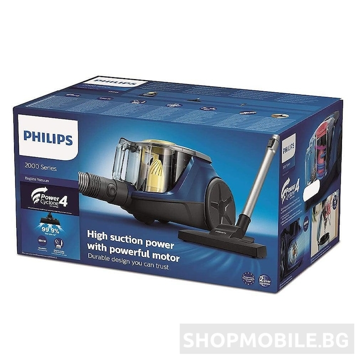 Aspirator fara sac Philips Seria 2000 XB2125/09, 850 W, 1.3 L, Tehnologie PowerCyclone 4, Filtru Super Clean, Albastru