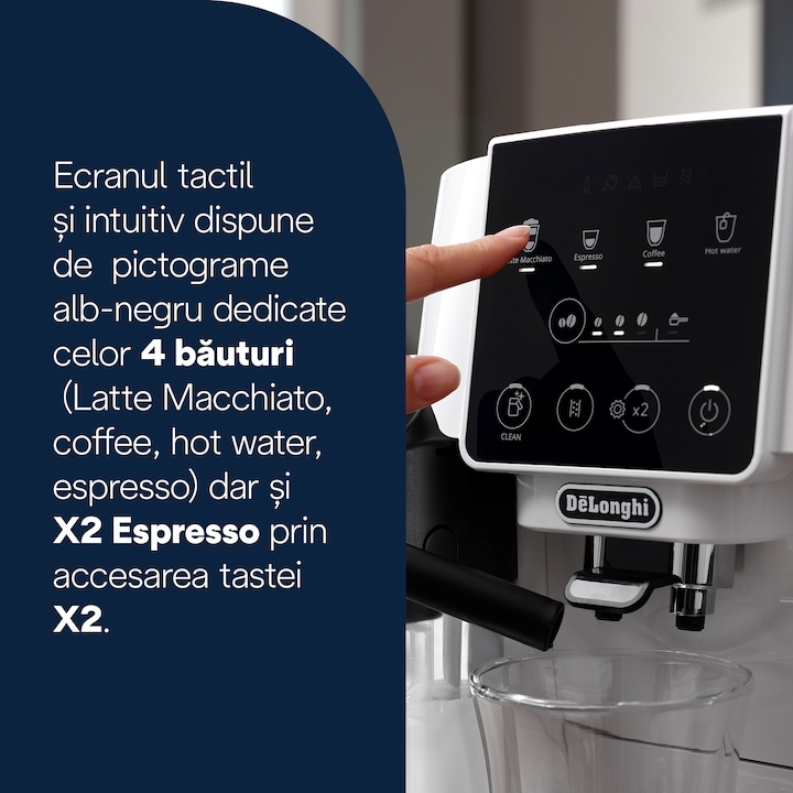 Espressor automat De’Longhi Magnifica Start Milk ECAM220.61.W, 5 bauturi, Tehnologie LatteCrema, rasnita integrata cu 13 setari 1450W, 15 bar, Alb