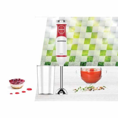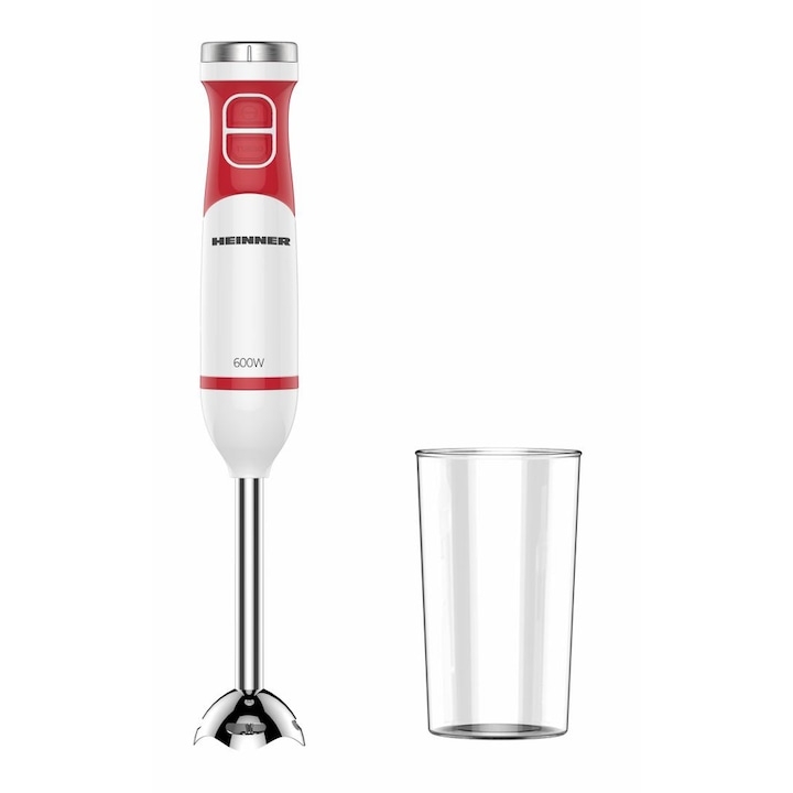 Blender de mana HEINNER HHB-D600WHR, 600 W, 2 viteze, Lame Inox, Cana mixat 0.7 l Alb/Rosu