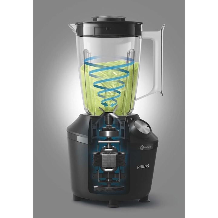 Blender Philips Seria 3000 HR2291/01, 600W, 2l, 2 viteze+Pulse, zdrobire gheata, Sistem ProBlend, aplicatia NutriU, Negru
