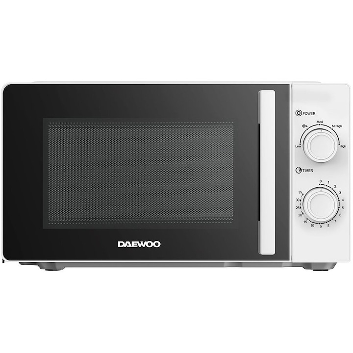 Cuptor cu microunde Daewoo KOR-6M20W, control mecanic, 20 litri, putere 700 W, 5 niveluri de putere, farfurie interioara de 24, 5 cm, Alb