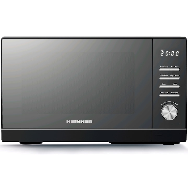 Cuptor cu microunde Heinner HMW-MD25DMRBK, 25L, digital, geam oglinda, 800W, 5 trepte de putere, timer, functie decongelare, diametru platou rotativ 288mm, negru