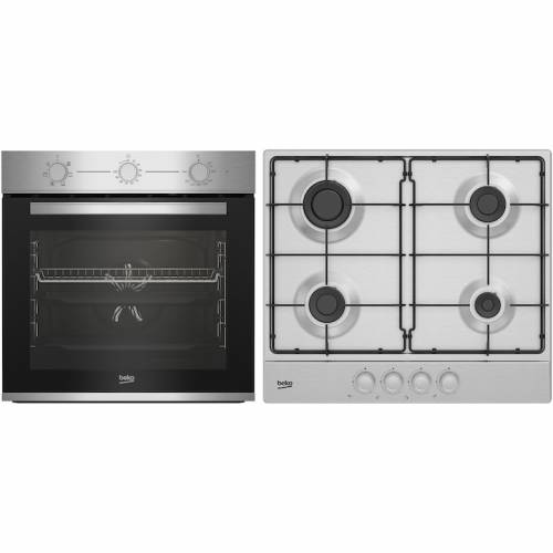 Pachet Cuptor incorporabil Beko BBSE12130XD, Electric, 71 l, Clasa A, Booster, Fan Assisted cooking, SteamShine Cleaning,Timer, Inox + Plita incorporabila Beko HIAG64223SX, Gaz, 4 arzatoare, High-Efficiency Gas Burner, 60 cm, Inox
