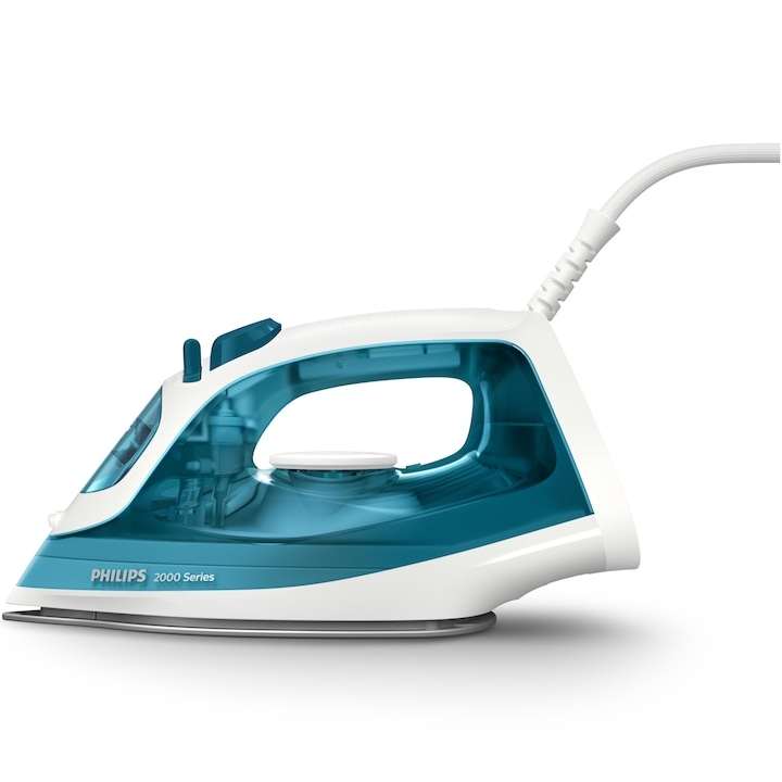 Fier de calcat Philips DST2020/90 Seria 2000, 2000W (240V), debit de abur 25g/min si jet de abur 110g/min, 4 setari de abur, talpa ceramica, sistem anti-picurare, Calc Clean, capacitate rezervor 250ml, albastru inchis