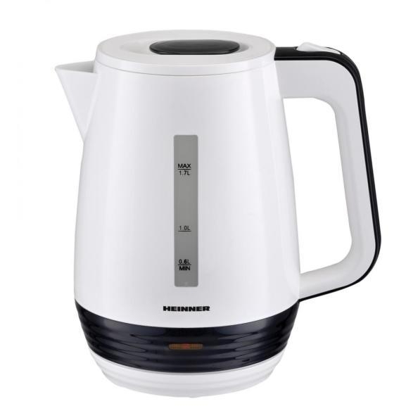 Fierbator Heinner HEK-17WH, 1.7 L, element incalzire inox, oprire automata, plastic, Negru/Alb