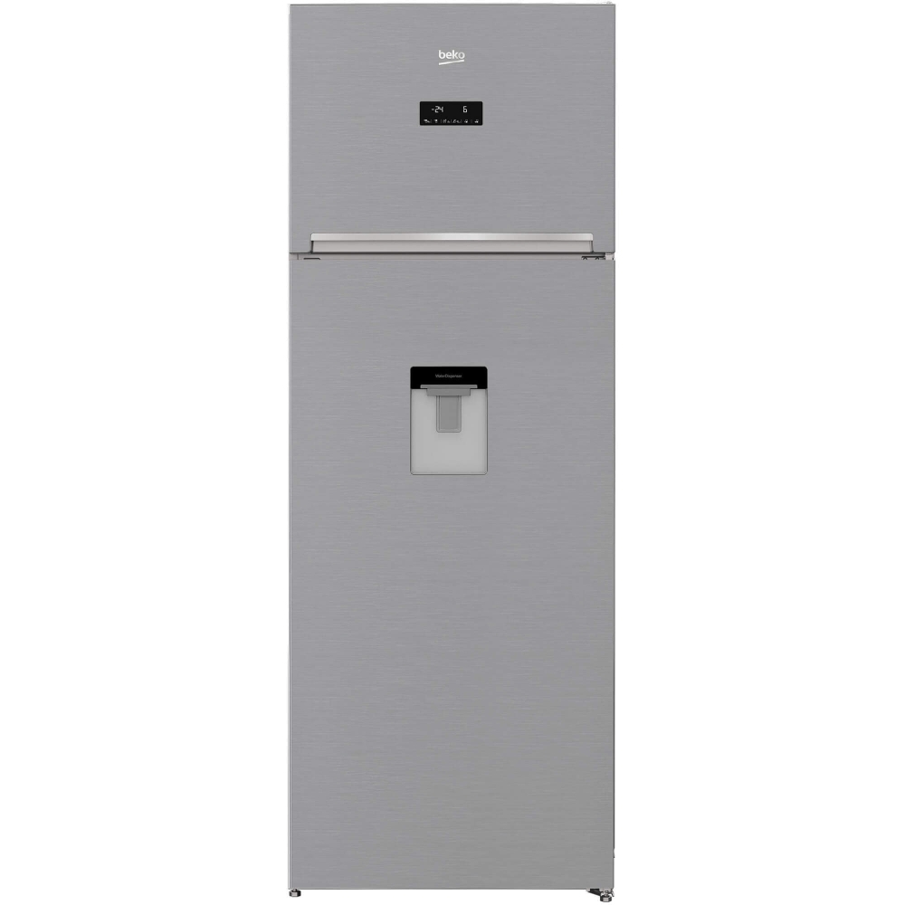 Frigider cu doua usi Beko RDNE535E30DZXBN, 471 l, No Frost, Dozator de apa, Display touch control, Compresor ProSmart Inverter, Clasa F, H 193 cm, Argintiu