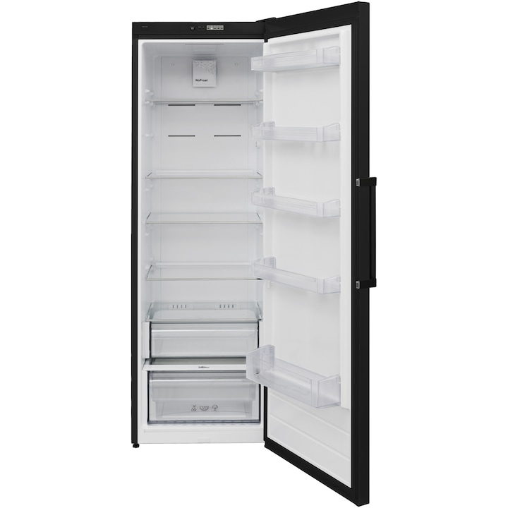 Frigider cu o usa Heinner HF-V401NFBKE++, 389 l, No Frost, Clasa E, Control electronic, Iluminare LED, H 186 cm, Negru
