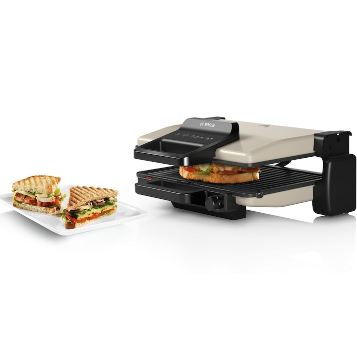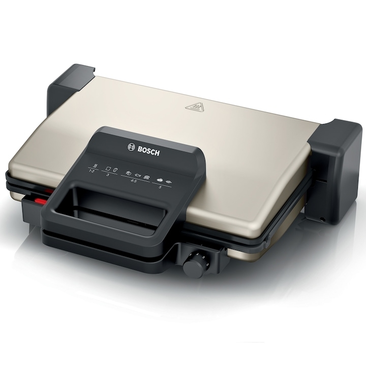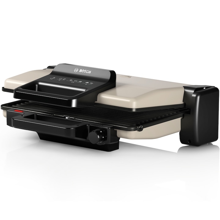 Gratar electric 3 in 1 Bosch TCG3302, 2000 W, Contact grill, temperatura reglabila, placi grill cu canale de scurgere a grasimii, gri
