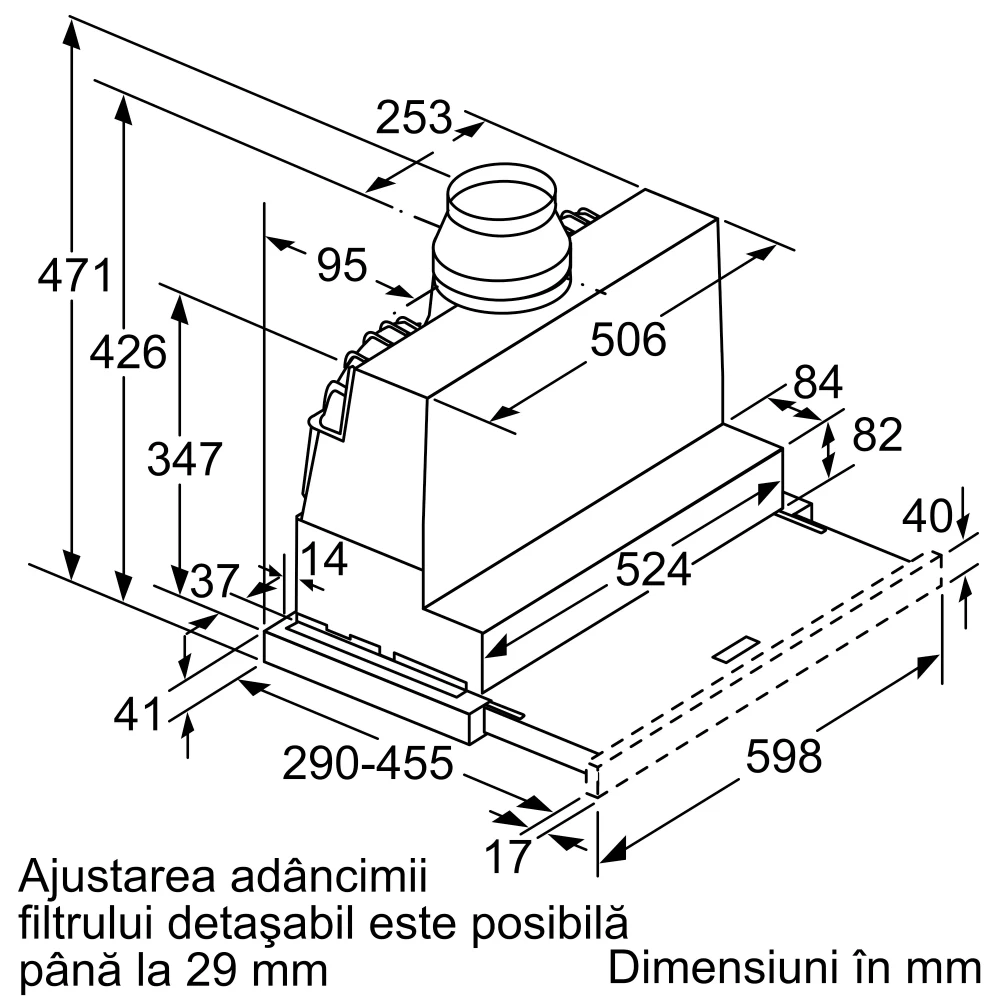 Hota incorporabila telescopica Bosch DFM064W54, Putere de absorbtie 388 mc/h, 60 cm