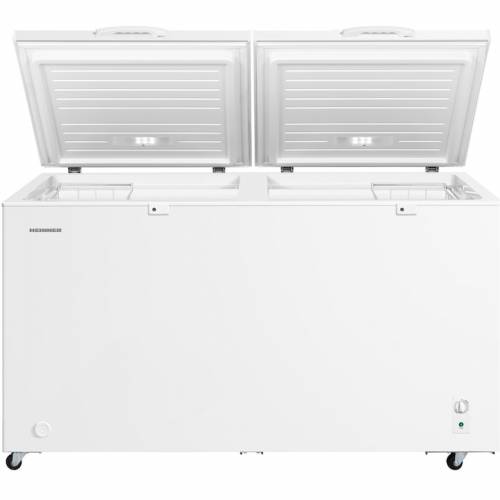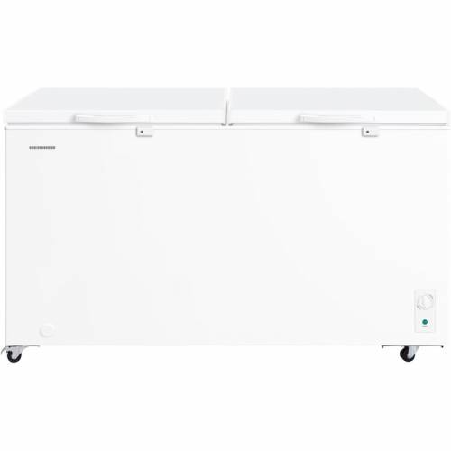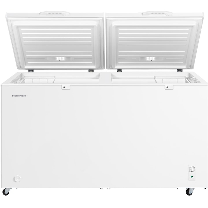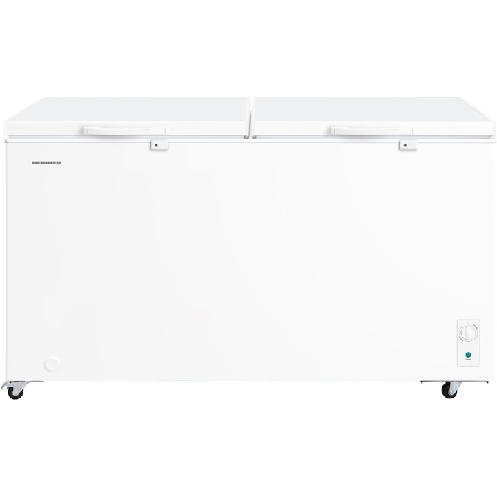 Lada frigorifica HEINNER HCF-M508INVCE++, 508 L, Clasa E, Convertibila(Frigider/Congelator), Compresor inverter, Control mecanic, Termostat ajustabil, Luminare LED, Maner extern cu incuietoare, 2 cosuri, Rezistenta la frig, Alb