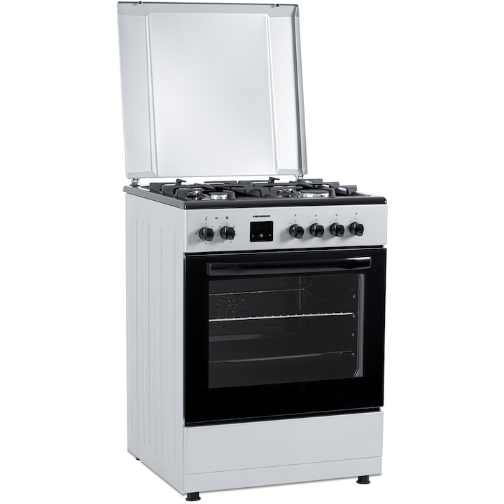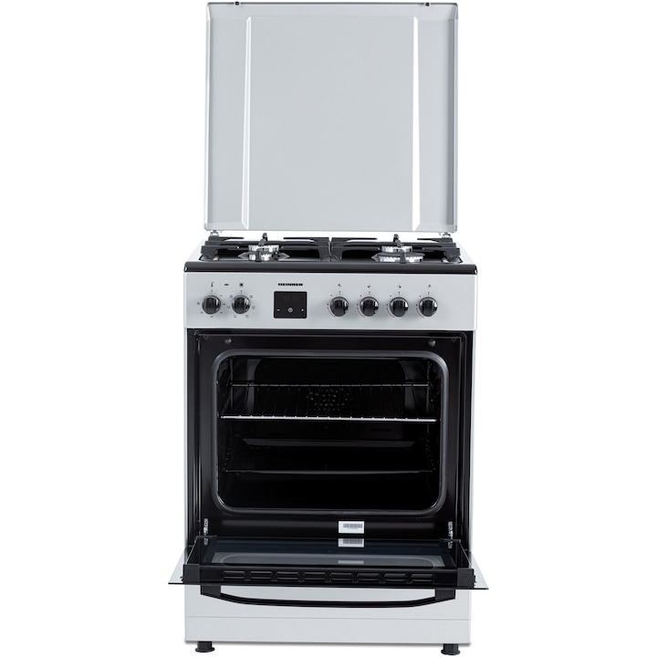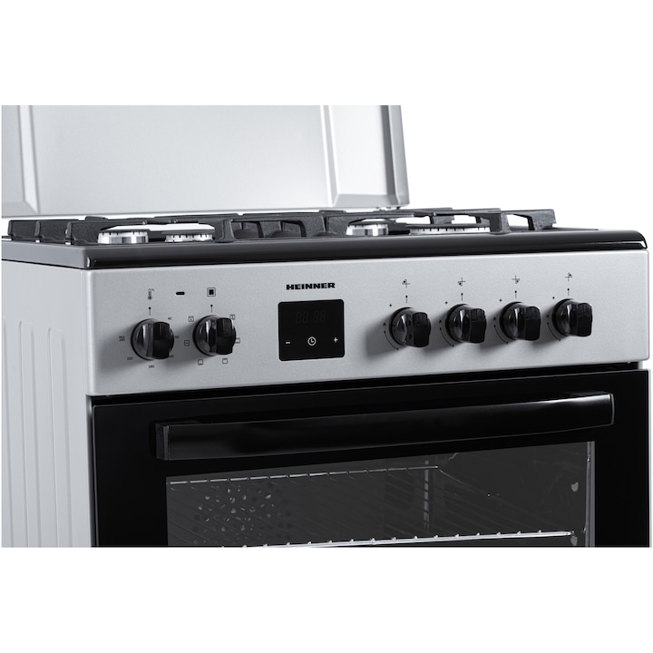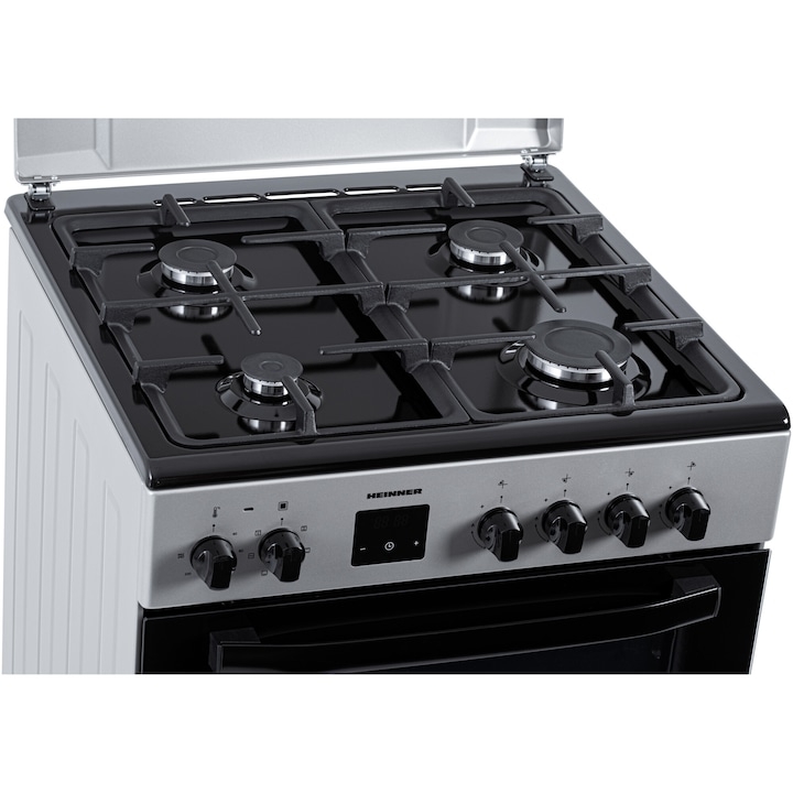Aragar mixt Heinner HFSC-S66FDC-BIX, digital, 4 arzatoare, cuptor electric, aprindere electrica plita, timer, grill, ventilatie, 60x60, inox