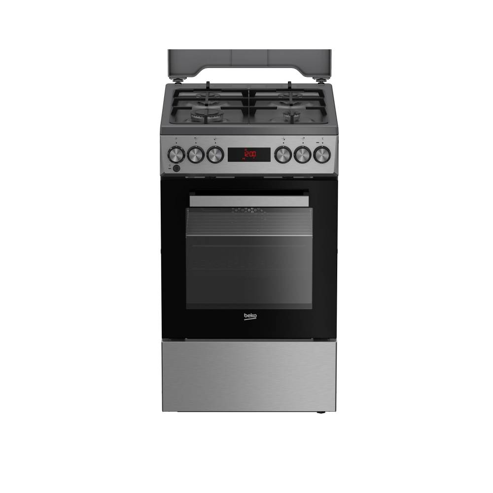 Aragaz Mixt Beko FSM52331TXDSN, 4 arzatoare gaz, Cuptor electric, 3D cooking, High-Efficiency Gas Burner, Gatire asistata de abur, SteamShine Cleaning, 8 functii, 50x60 cm, Clasa A, Inox