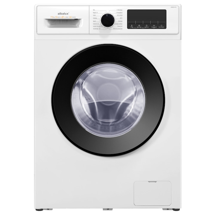 Masina de spalat rufe Albalux AXWGI1472, 7 kg, motor inverter, 1400 rotatii, 16 programe, Clasa energetica A-10%, adaugare rufe, spalare ccu aburi, Super rapid, Blocare acces copii, Alb
