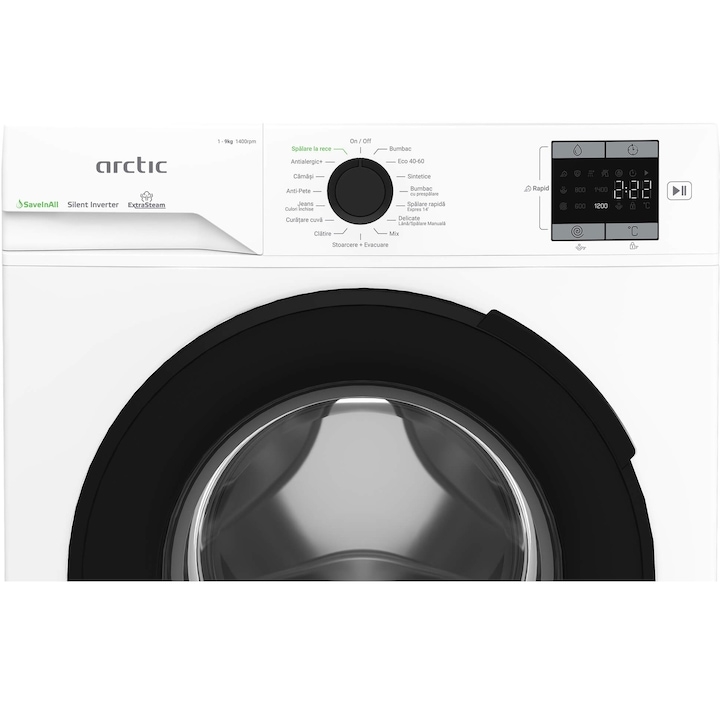 Masina de spalat rufe Arctic APLM1WFSU19410W, 9 Kg, 1400 RPM, Clasa A, Motor Silent Inverter, Recycled Tub, Child Lock, Add-In, Alb