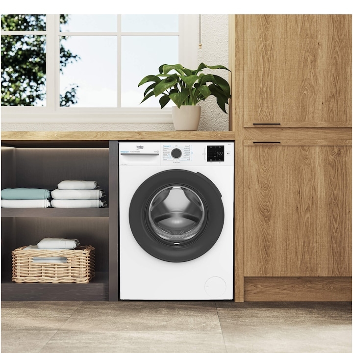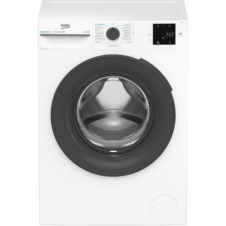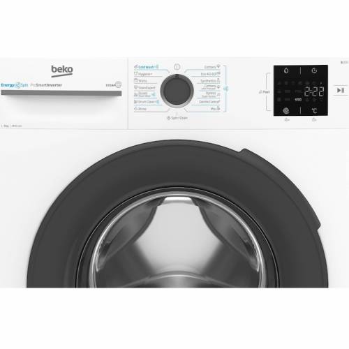 Masina de spalat rufe Beko BM3WFSU39413W, 9 Kg, 1400 RPM, Clasa A, SteamCure, Recycled Tub, ProSmart Inverter Motor, AddXtra, WaterMode, ColdWash, Alb