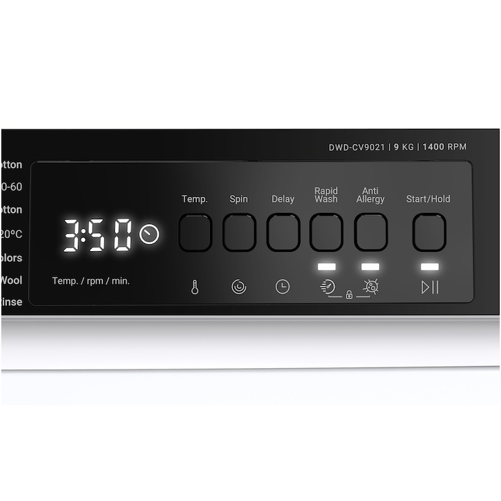 Masina de spalat rufe DWD-CV9021 Daewoo, 9 kg, Clasa A, 1400 RPM, Motor inverter, Steam Wash, Alb