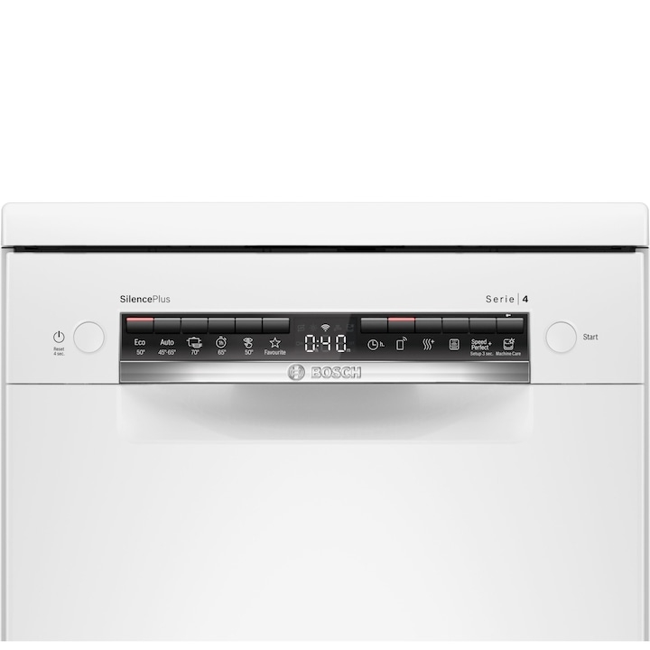 Masina de spalat vase Bosch SPS4HMW49E, 10 seturi, 6 programe, Home Connect, EcoSilence Drive, ExtraDry, Tab-count, Silence Plus,Sistem Rackmatic, Clasa E, 45 cm, Alb