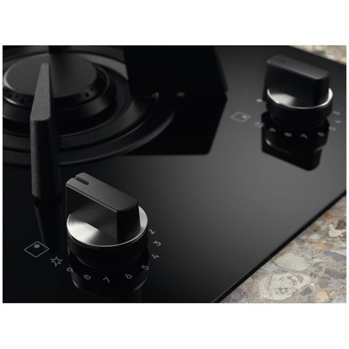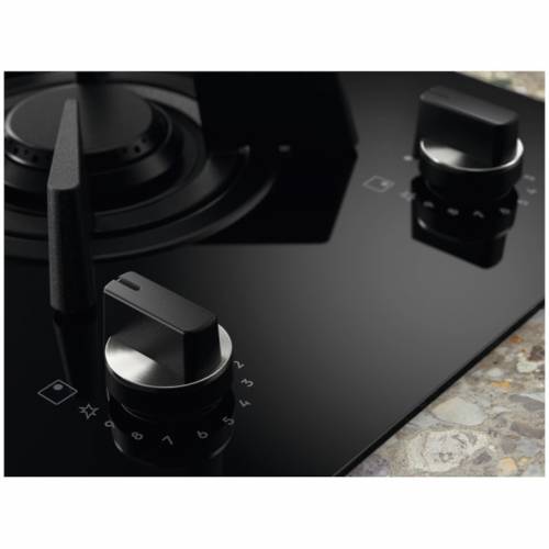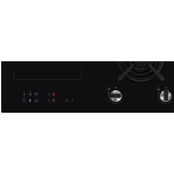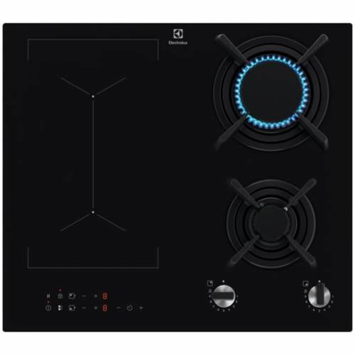 Plita incorporabila Electrolux KDI641723K, Mixta, 2 arzatoare gaz / 2 zone inductie, Aprindere electrica, Gratare Fonta, Timer Electronic, 60 cm, Negru