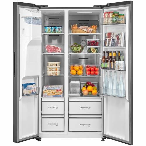 Frigider Side by side Heinner HSBS-H442NFXE++, 436 l, No Frost, Clasa E, Display, functie smart, Congelare si racire rapida, H 177 cm, Argintiu