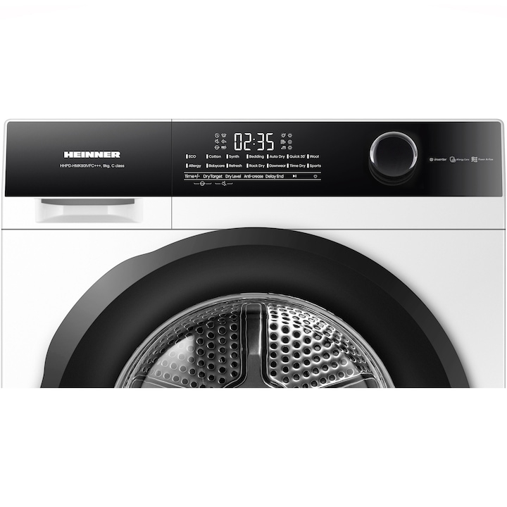 Uscator de rufe cu pompa de caldura HEINNER HHPD-HMK90IVFC+++, capacitate de incarcare 9 kg, Clasa energetica C, Motor inverter, Alb