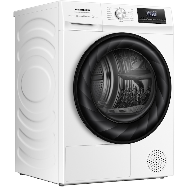 Uscator de rufe cu pompa de caldura HEINNER HHPD-HMY80IVFC+++, 8 KG, Clasa C, MOTOR INVERTER, Alb